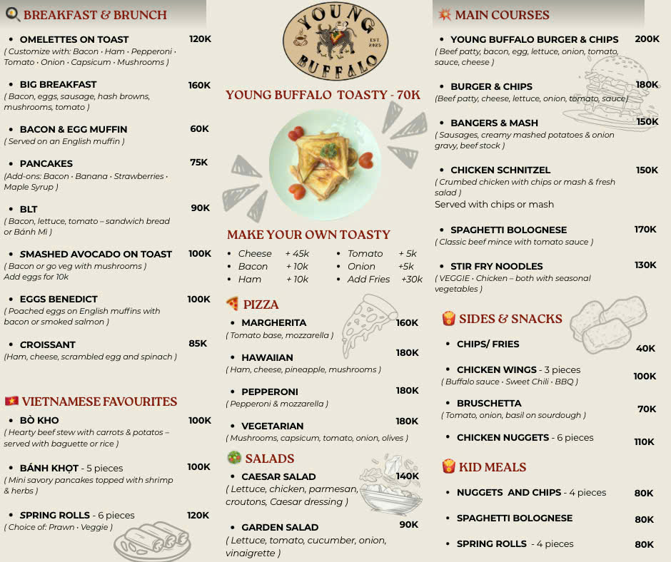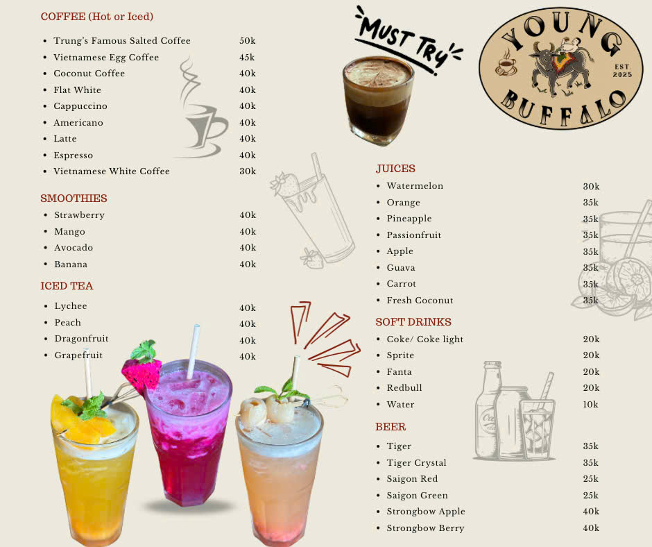 Young Buffalo is a restaurant and cafe located in Hoi An Ancient Town with Western dishes and salt coffee as its signature.